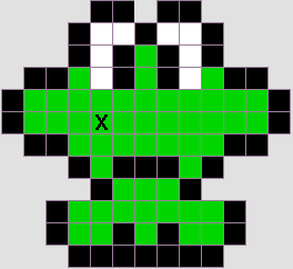 Verdeel de groene vakjes van de kikker in pentomino's zodat geen twee pentomino's met
