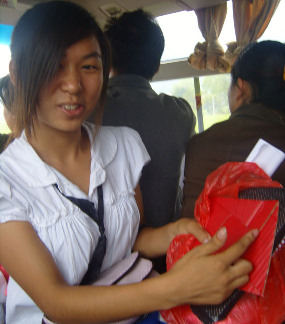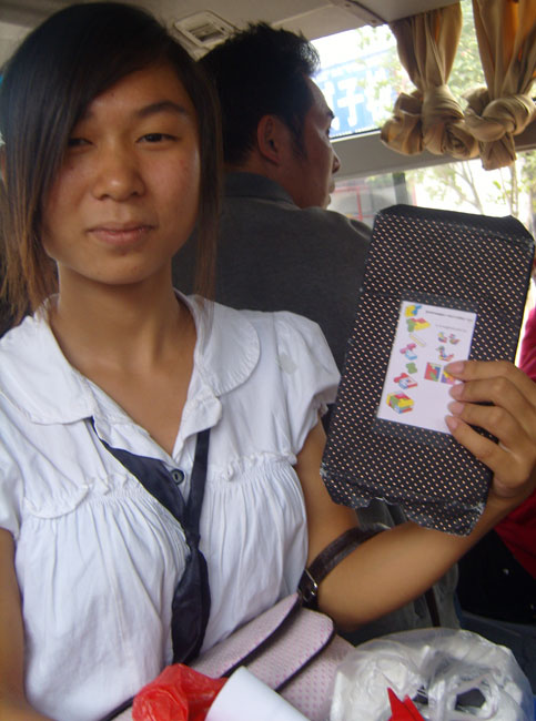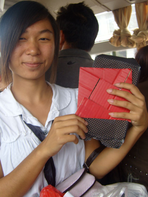 Pentomino's op de lokale bus naar Xing Ping Meisje maakte perfect het vierkant met de Y-pentomino.