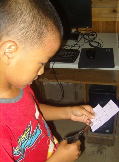 De X-pento juist tot in de hoeken knippen is een hele opdracht.
