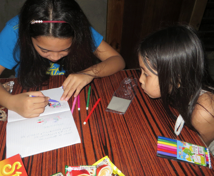 Kleine zus keek aandachtig toe.
