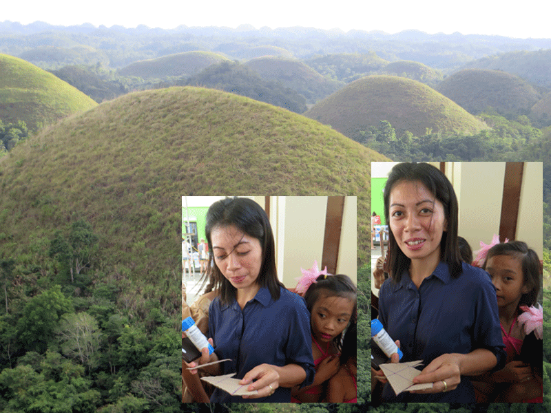 Juf was blij met de puzzel maar ook met de bellenblazer van Elly.
