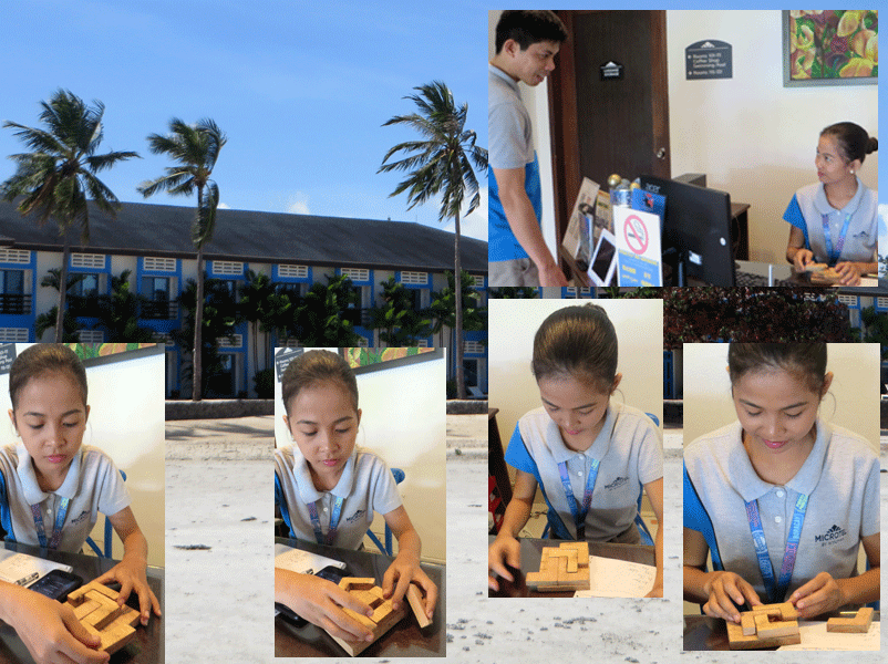 Aan de receptie in Microtel, Puerto Princessa.