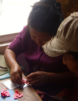 | Wie kan het pentominosetje weer in het doosje stoppen? Man was