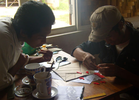 Terug van trekking naar Yar Thit en Tar Yaw. Wel de verwelkoming met gladiolen