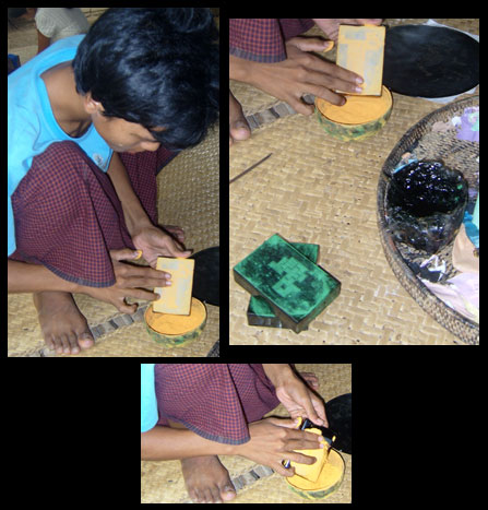 De kleur wordt aangebracht en nadien worden doosjes gewassen.