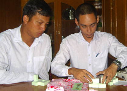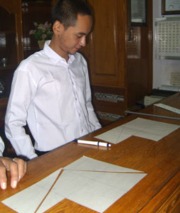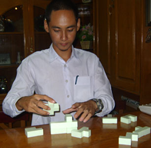 de P-pentomino tot een vierkant. Ze hadden mooi stukken karton.