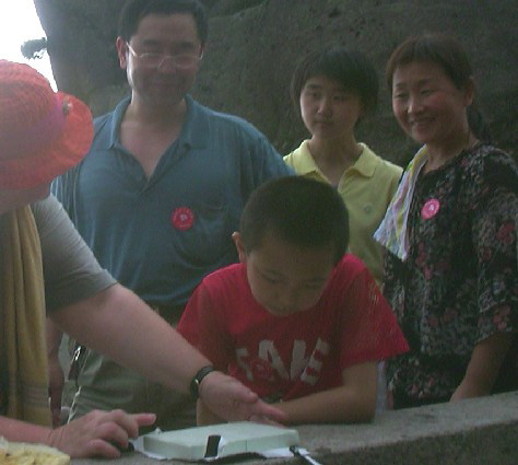 Samen met familie in de kabelbaan. Bij aankomst een pentosetje gegeven. Als welopgevoede Chinees ging men het niet openen maar we konden het niet laten.