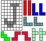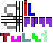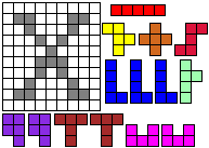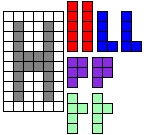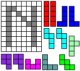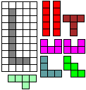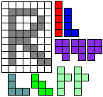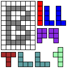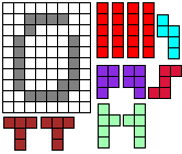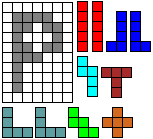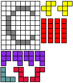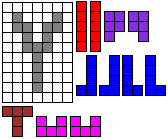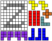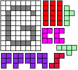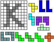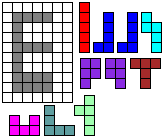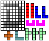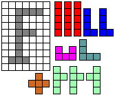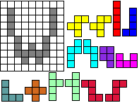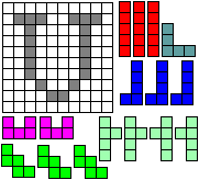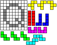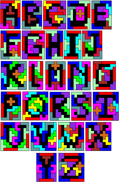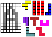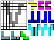 Leg op de witte vakjes de pentomino's die naast de letter staan zodat geen twee pentomino's met
