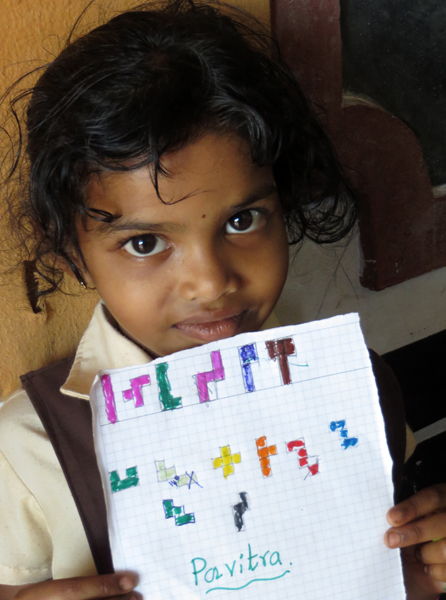 Pavitra moest enkele pentomino's opnieuw tekenen.