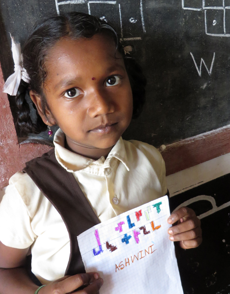 Ashwini is de eerste die alle pentomino's juist getekend heeft.