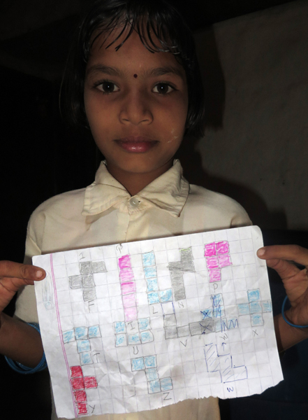 Thuis bij Lamani. Haar schoolwerk kwam uit de boekentas.