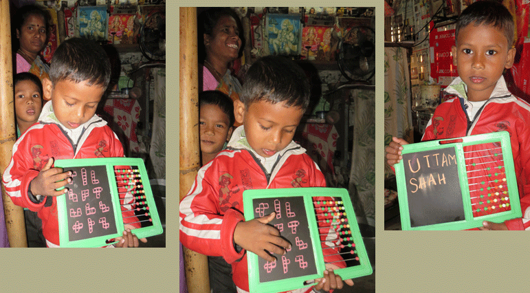 Bij de buren in Dibrugarh. Waar haalt Uttam Shah het kleurkrijt?