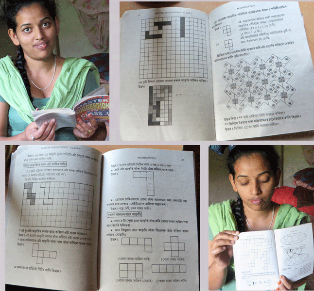 Bij de familie achter de winkel in natuurpark Nameri. De pentomino's staan in Indische schoolboekjes!