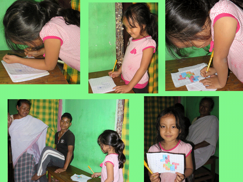 In mijn eerste klas restaurant op Majuli. Supriya Risong tekende een eendje.