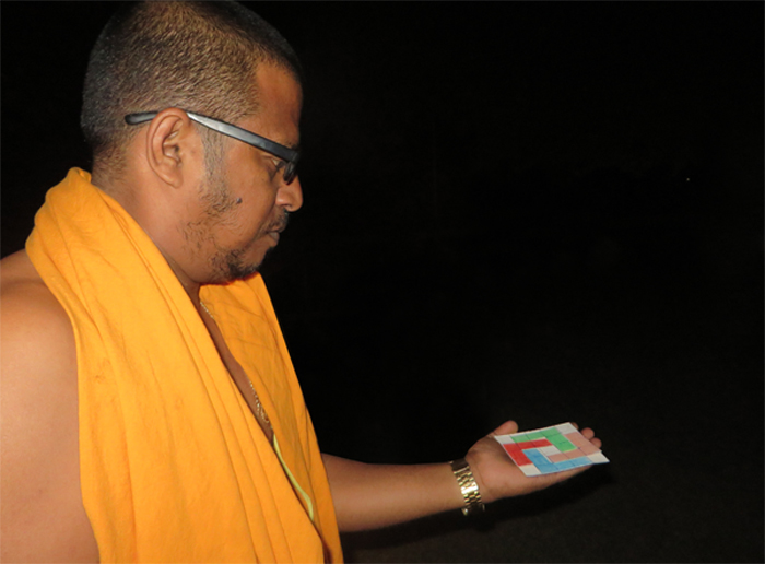 Hij vond het en kwam het tonen tijdens lichtshow aan paleis.