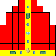 Vul de rode vierkantjes met de pentomino's die geen symmetrieas en