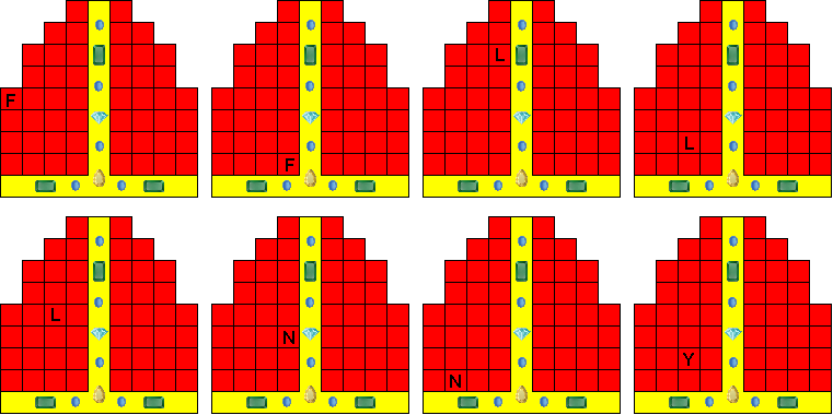 Hieronder staan nog eens de pentomino's met hun overeenkomende letters.