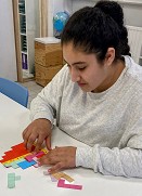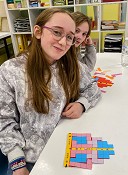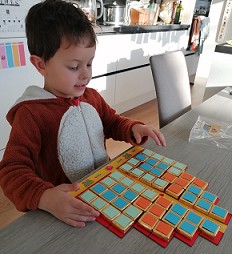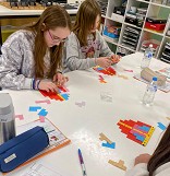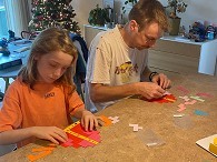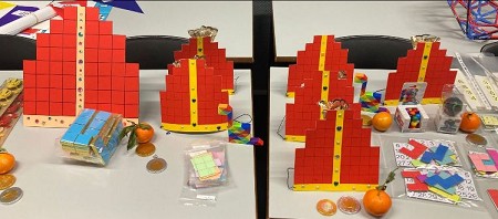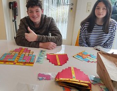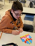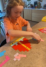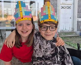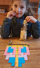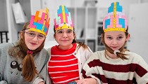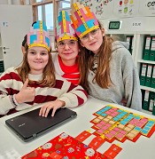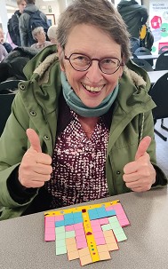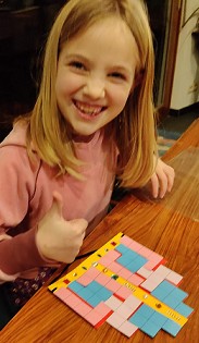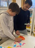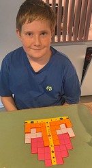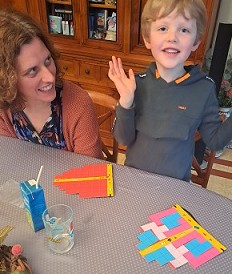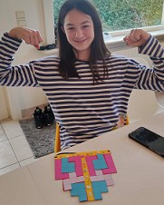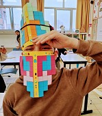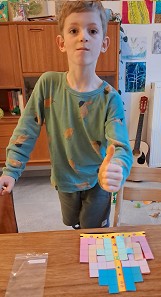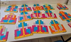 "Het leggen vd pentomino's in de mijter was echt een uitdaging voor sommigen. Ik heb moeten differentiëren door aan sommige leerlingen te zeggen dat dezelfde kleuren niet naast elkaar mochten liggen en bij de