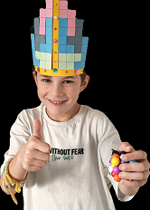 mijter met pentomino's. Een speelse wiskunde-oefening waarbij